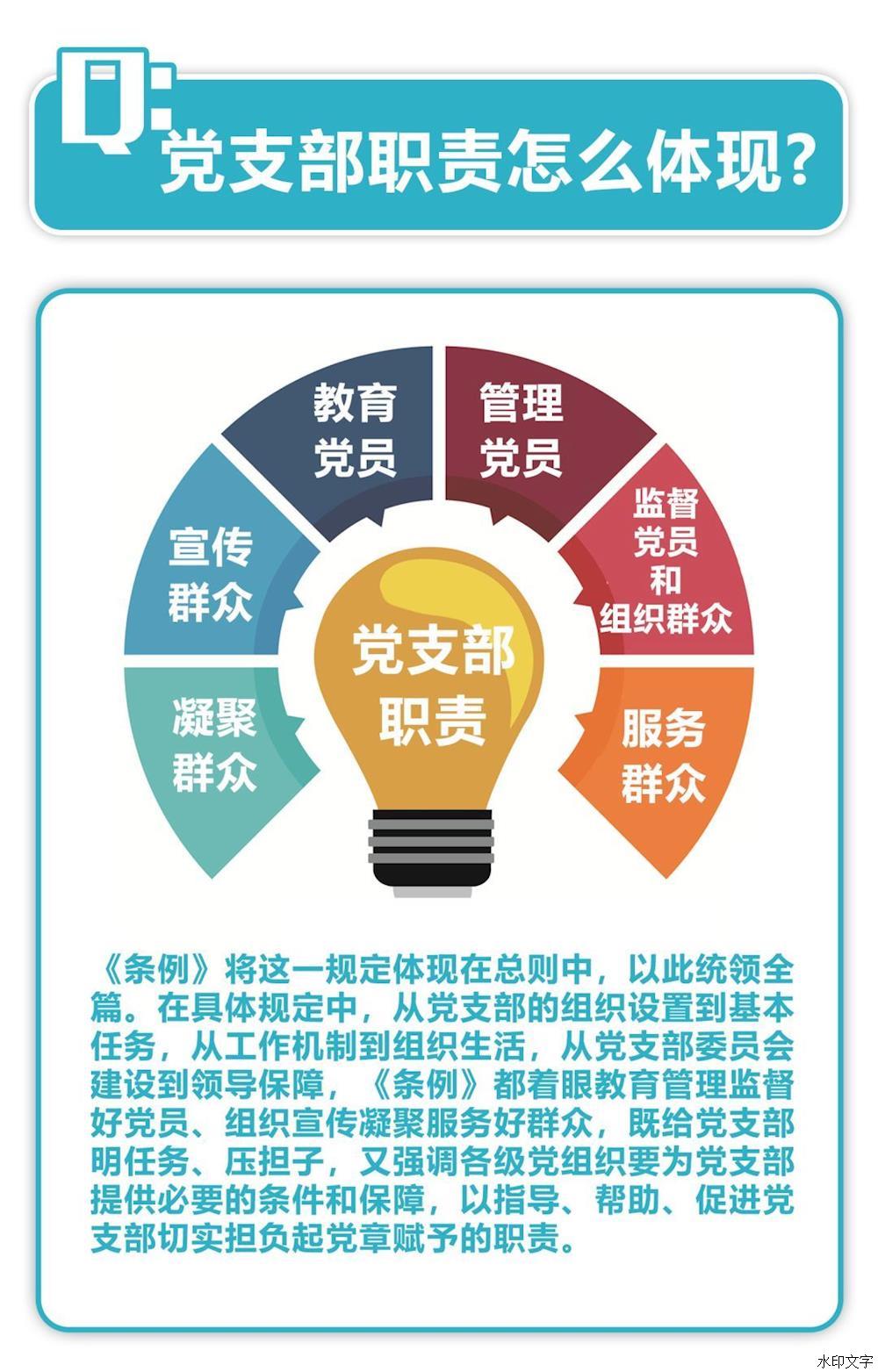 第二條 黨支部是黨的基礎組織,是黨組織開展工作的基本單元,是黨在社會基層組織中的戰(zhàn)斗堡壘,是黨的全部工作和戰(zhàn)斗力的基礎,擔負直接教育黨員、管理黨員、監(jiān)督黨員和組織群眾、宣傳群眾、凝聚群眾、服務群眾的職責。