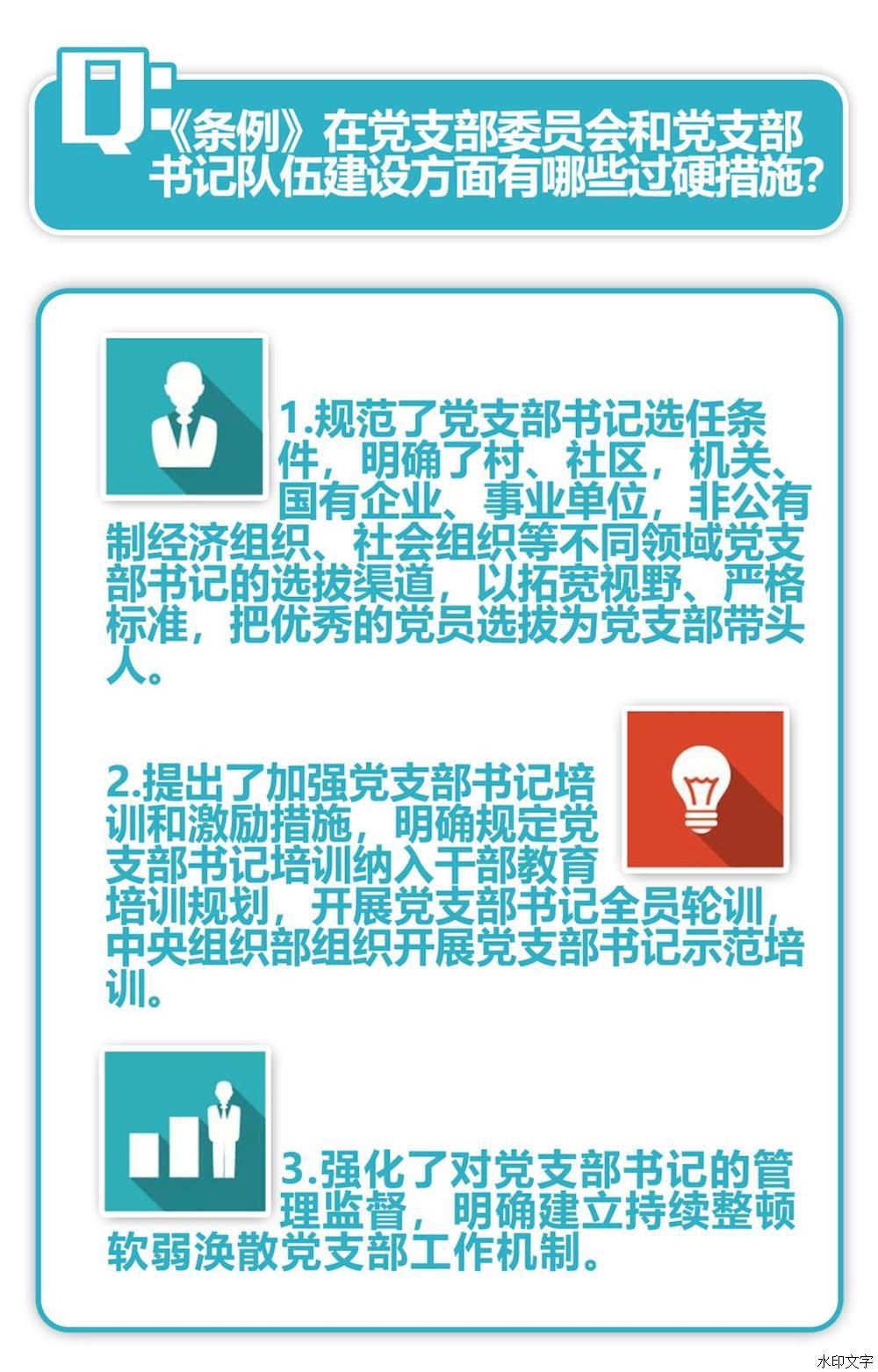 通知強調,重視黨支部、善抓黨支部,是黨員領導干部政治成熟的重要標志。各級黨委(黨組)要牢固樹立政治意識、大局意識、核心意識、看齊意識,切實把抓好黨支部作為黨的組織體系建設的基本內容、管黨治黨的基本任務、檢驗黨建工作成效的基本標準,采取有力措施,推動《條例》落到實處、見到實效。要抓好《條例》的學習宣傳和貫徹落實,利用報紙、廣播、電視和手機、網絡等媒介,通過專題研討、集中培訓等方式,使各級黨組織、廣大黨員特別是黨支部書記深入領會《條例》精神,全面掌握《條例》內容,切實增強貫徹執(zhí)行《條例》的思想自覺和行動自覺。要加強對黨員領導干部的培訓,把《條例》納入黨委(黨組)理論學習中心組學習內容和黨校(行政學院)教育課程,提高各級領導班子抓好黨支部工作、推動黨支部建設的本領。要加強監(jiān)督檢查,對貫徹落實《條例》不力的嚴肅追責問責。中央組織部要會同有關部門加強督促落實,確保各項規(guī)定得到貫徹執(zhí)行。