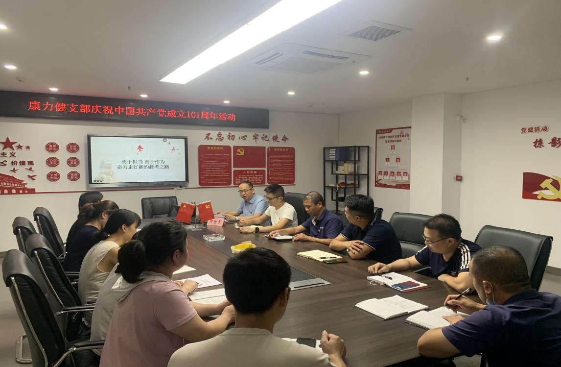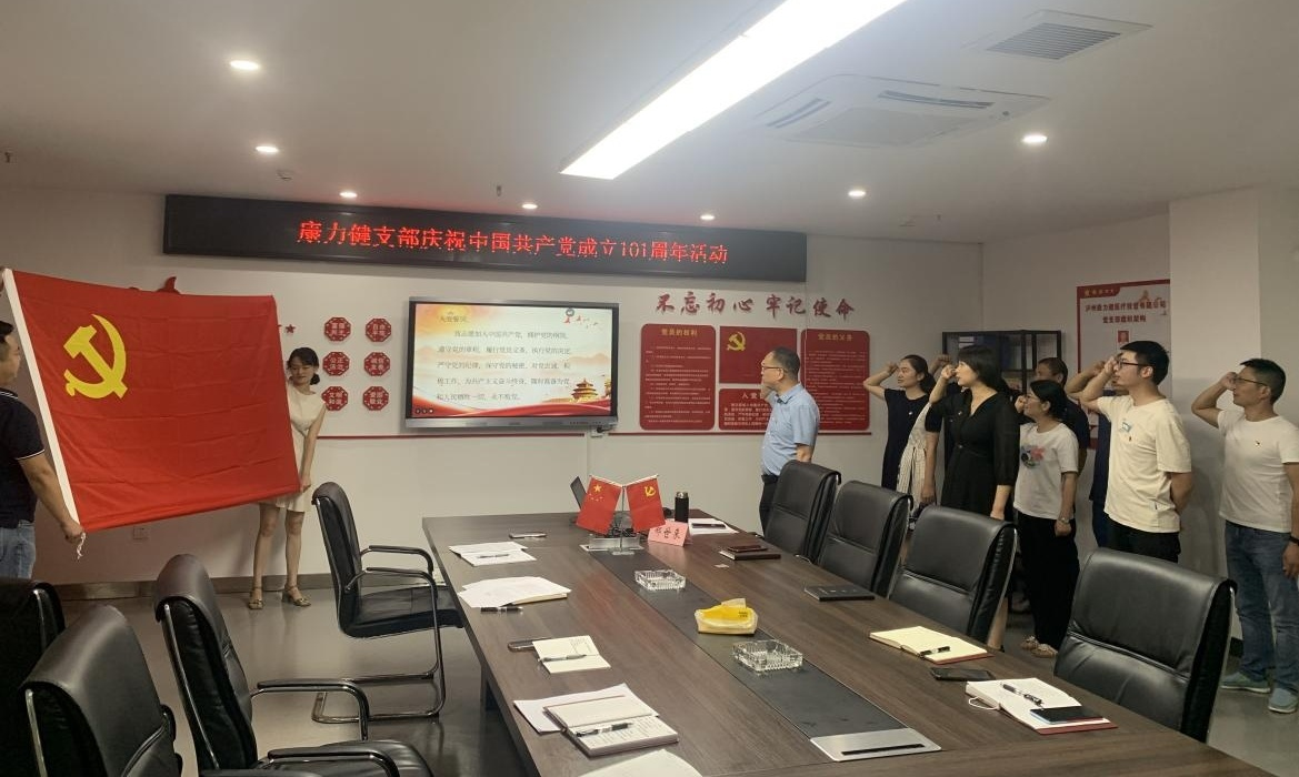 為慶祝中國共產(chǎn)黨建黨 101 周年, 7 月 1 日, 康力健黨支部開展 “七一” 主題黨日活動(dòng), 通過唱紅歌、 重溫入黨誓詞、 支部書記講黨 課等多種形式, 教育引導(dǎo)黨員干部不忘初心, 知行合一, 以實(shí)際行動(dòng) 迎接黨的二十大勝利召開。