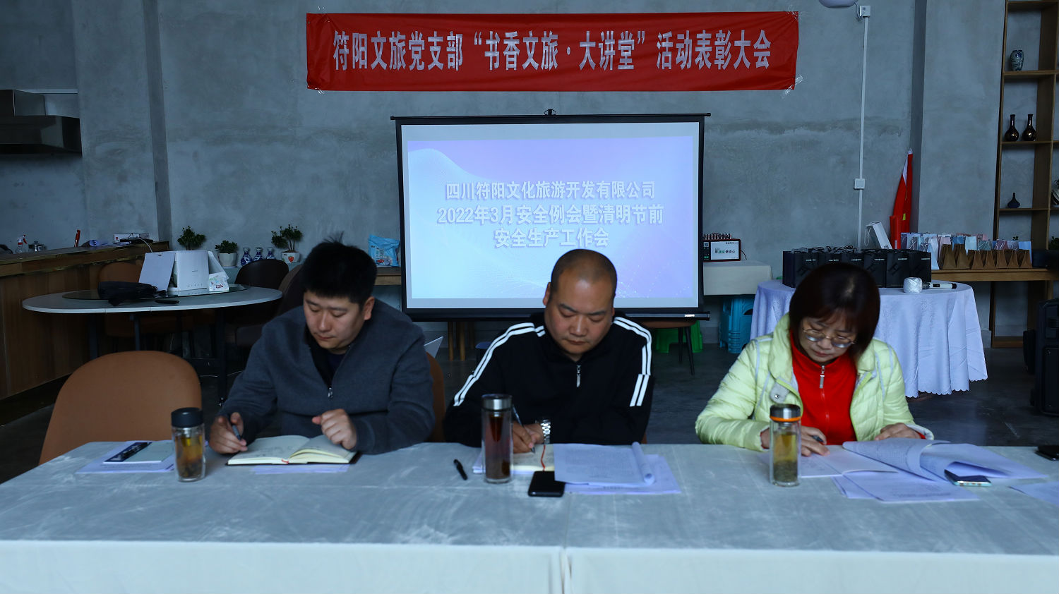 2022 年 3 月 24 日 , 符 陽 文 旅 公 司 召 開 3 月 安 全 生 產(chǎn) 工 作會(huì)。 總經(jīng)理吳平主持會(huì)議, 全體員工參加。 會(huì)上, 譙棣升 董事長(zhǎng)圍繞交通運(yùn)輸安全、 在建項(xiàng)目安全、 森林防滅火安全、 地質(zhì)災(zāi)害防范、 酒店經(jīng)營(yíng)安全等幾個(gè)方面作了講話, 強(qiáng)調(diào)每 個(gè)員工都有安全責(zé)任, 發(fā)現(xiàn)違章作業(yè)要大膽制止, 保證安全 生產(chǎn)。