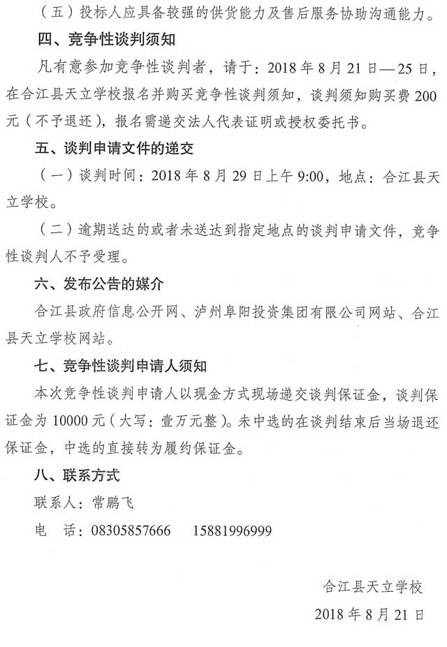 競爭性談判公告:合江縣天立學(xué)校食堂大宗食品定點(diǎn)采購項(xiàng)目競爭性談判公告